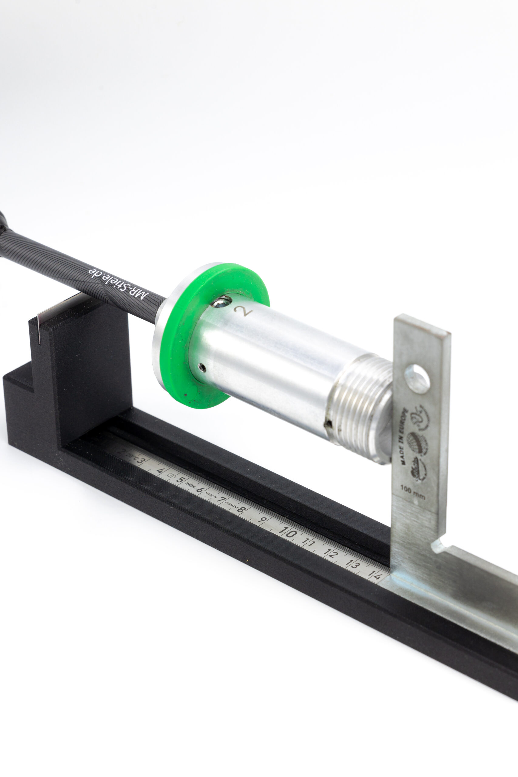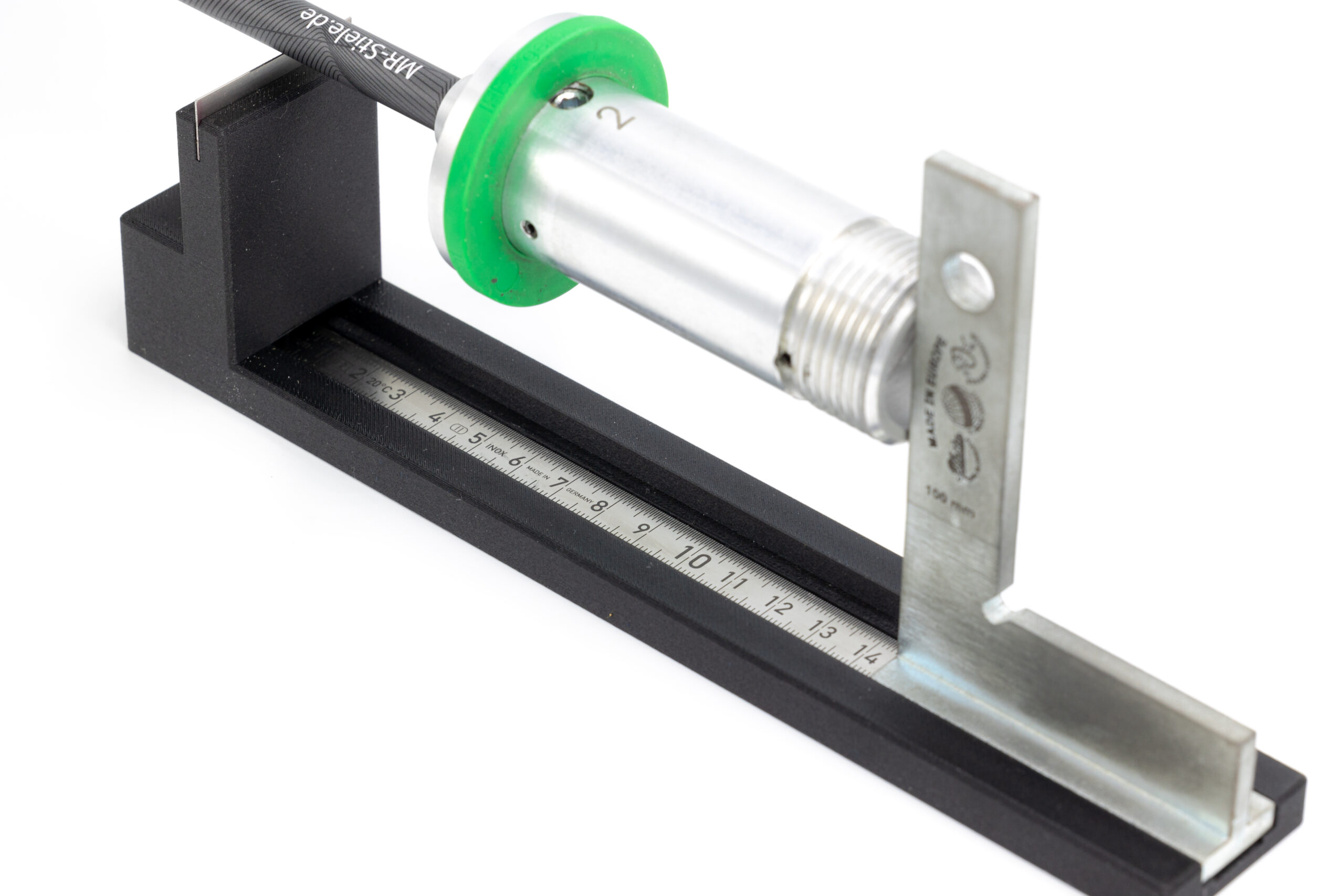 Der im Set enthaltene Metallwinkel erlaubt die exakte Positionierung und erleichtert die Ausrichtung der Messung.