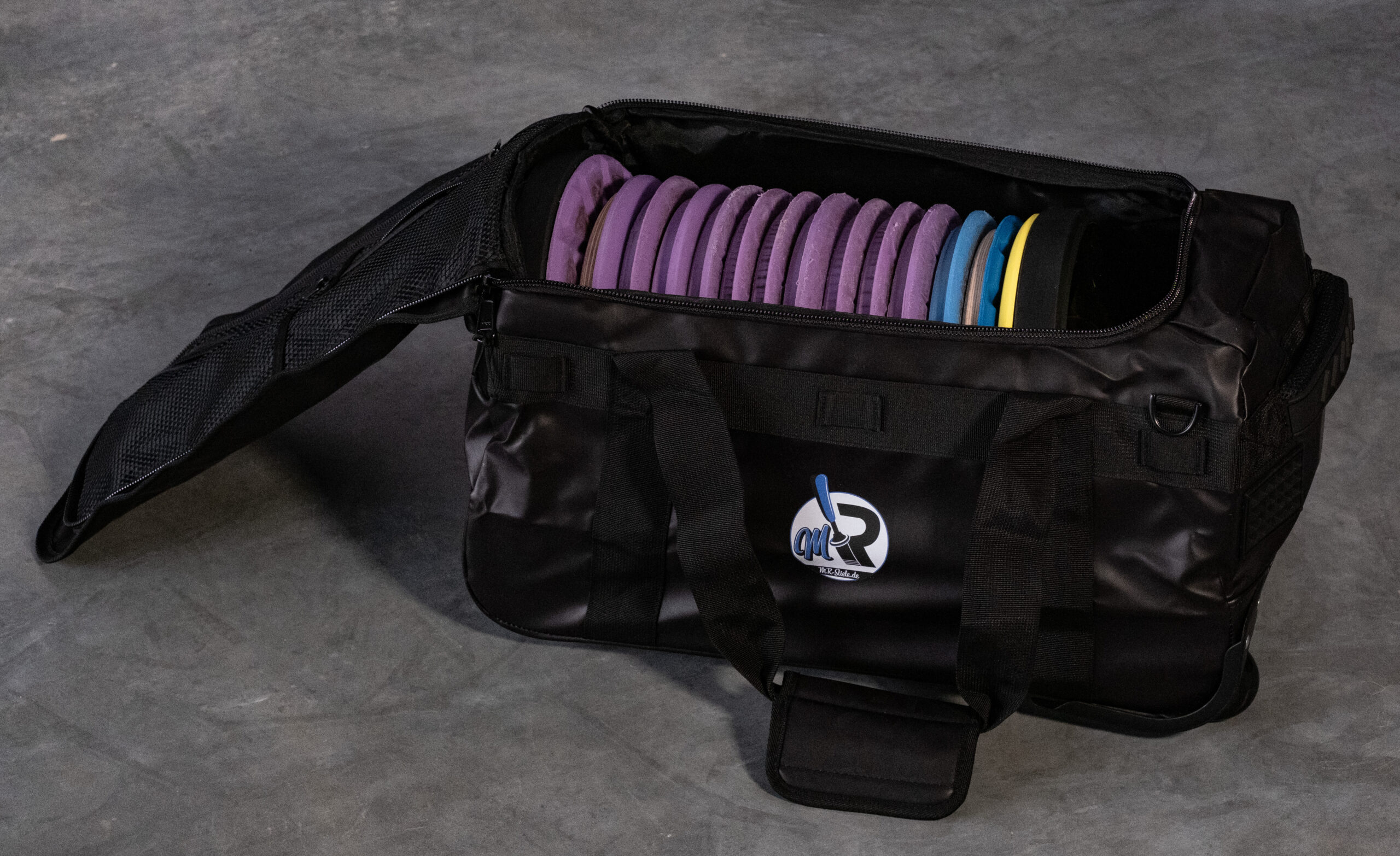 Der MR-Trolley Groß ist die durchdachte Transport- und Aufbewahrungslösung für alle Eisstockschützen, die ihre Ausrüstung sicher, ordentlich und mobil verstauen möchten. Mit seinen Maßen von 70 x 30 x 30 cm bietet er genügend Platz für zwei Stockkörper und bis zu 10 Platten – professionell getrennt und geschützt durch einen stabilen Holzeinsatz.